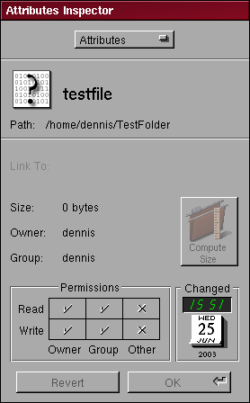 Using the above Attributes Inspector, you might have noticed that the Compute Size icon went from grey to full color, when switching from file to folder. This indicates that the icon can now be clicked. Once clicked it will grey out again. And the Size: parameter is updated with the new value, the total bytes used in this Folder.